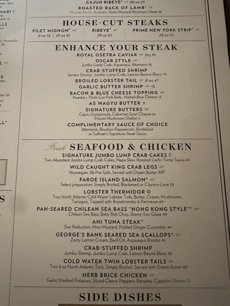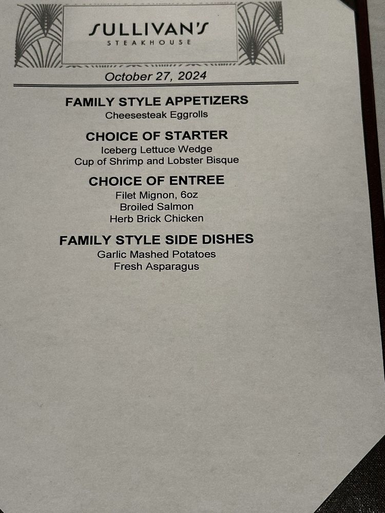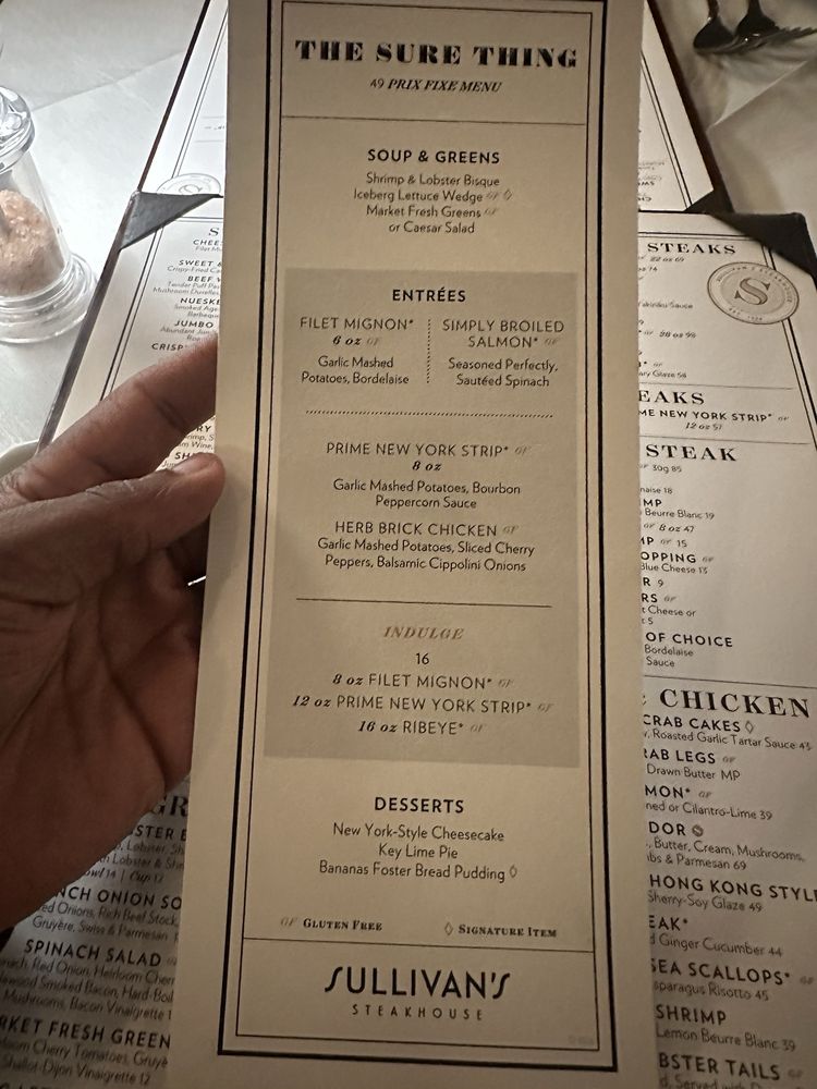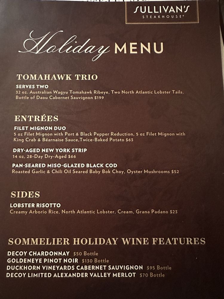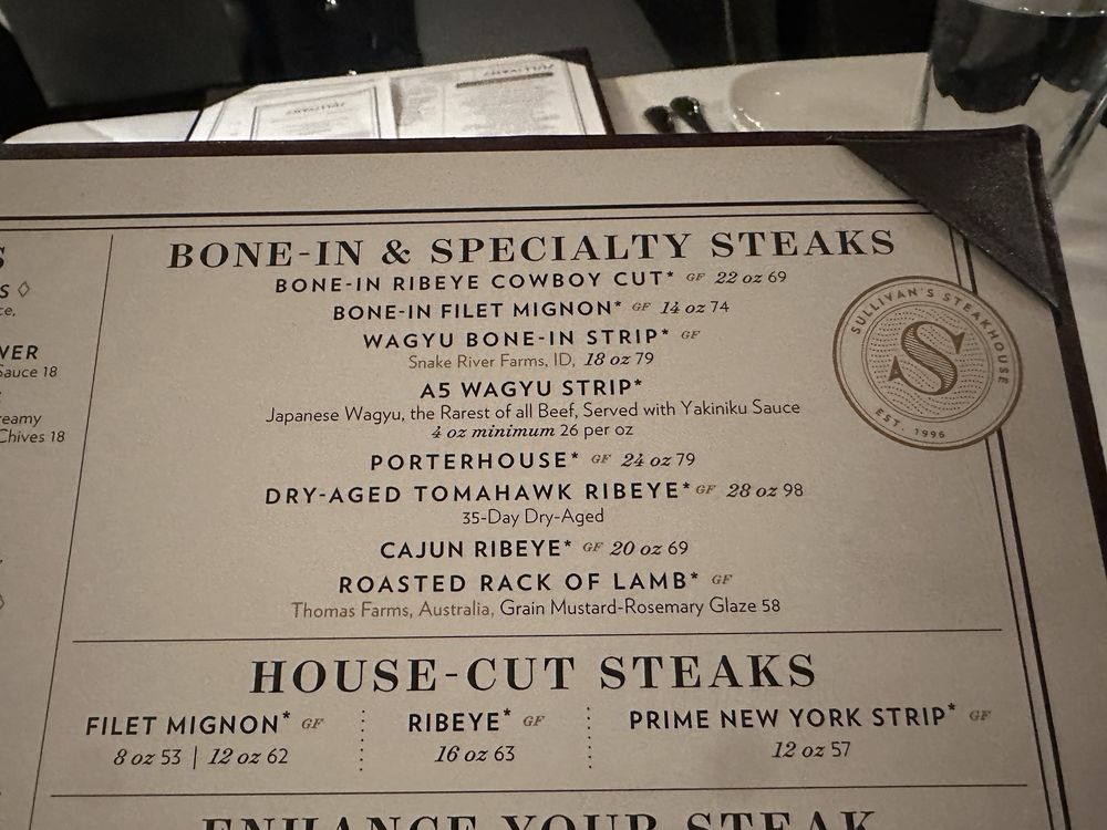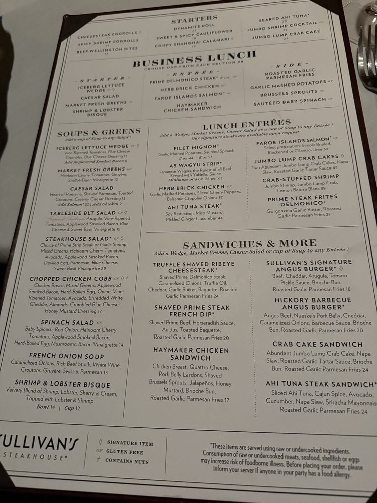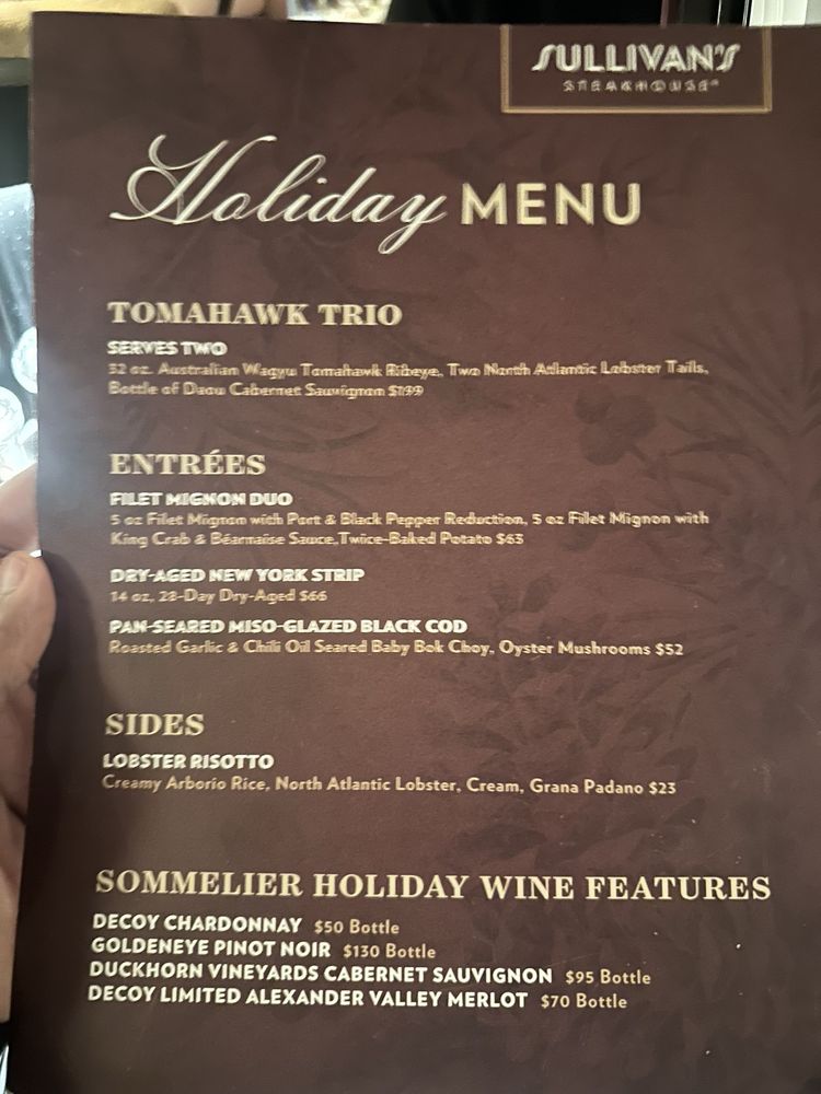 “ My boyfriend took me to Sullivans for my birthday and we had a great experience! Steven Perry was our waiter and he was very informative, funny, and even showed us a magic trick! We had the oyster Rockefeller LOVED for a starter, ... ”